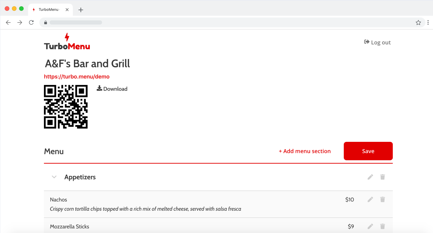 TurboMenu manages all the hosting and technical aspects involved in having a contactless menu.